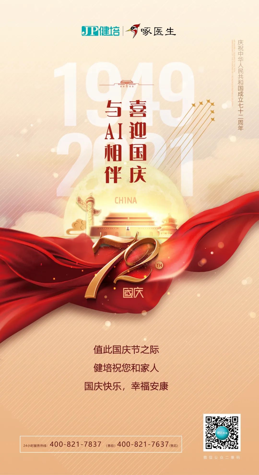喜迎國慶,與AI相伴! 原創(chuàng) 健培科技2021/10/12 9:35:30 共譜盛世華章神州奮起,國家繁榮山河壯麗,歲月崢嶸江山不老,祖國常春值此國慶佳節(jié)之際健培祝祖國母親繁榮昌盛祝您和家人國慶節(jié)快樂!國慶節(jié)放假通知