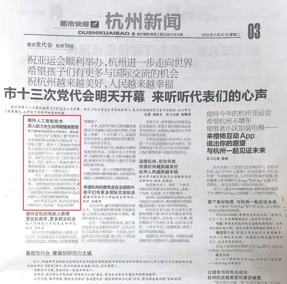 杭州已有“互聯(lián)網(wǎng)之都”的稱號(hào),未來我希望這座城市還能變成“人工智能之都”。期待人工智能技術(shù)能更深入地助力全生命周期的健康管理,這也是我們今后一段時(shí)間的研究方向。我們已成功打造了醫(yī)療閱片機(jī)器人,今后,期待人工智能還能介入慢性病管理、日常健康監(jiān)測(cè)等環(huán)節(jié),就像家里多了一個(gè)隨身醫(yī)生。