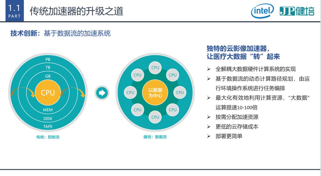 早在2016年,健培科技基于數(shù)據(jù)流的加速器項目就參與了國家科技部十三五重大專項,也取得了很好的成果,已經(jīng)幫助在醫(yī)院影像大數(shù)據(jù)的分析計算上發(fā)揮了很好的作用。