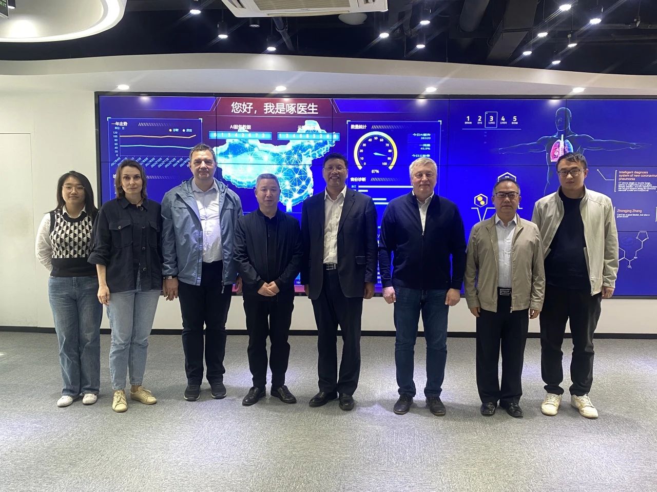 4月10日下午, 白俄羅斯科學(xué)院通訊院士、白俄羅斯科學(xué)院信息問題聯(lián)合研究所原所長Alexander Tuzikov,白俄羅斯國立大學(xué)計(jì)算機(jī)系原主任、教授Alexander Nedzved,白俄羅斯國立大學(xué)生物系副教授Volha Nedzvedz,浙江樹人大學(xué)副校長葉時平,浙江樹人大學(xué)信息科技學(xué)院副院長張登輝,浙江樹人學(xué)院信息科技學(xué)院博士孫慶榮、李思瑩等領(lǐng)導(dǎo)一行蒞臨健培科技參觀交流并開展座談。深入了解醫(yī)療行業(yè)前沿技術(shù)的發(fā)展情況,以及人工智能在數(shù)字醫(yī)療領(lǐng)域的場景應(yīng)用和產(chǎn)業(yè)化前景。