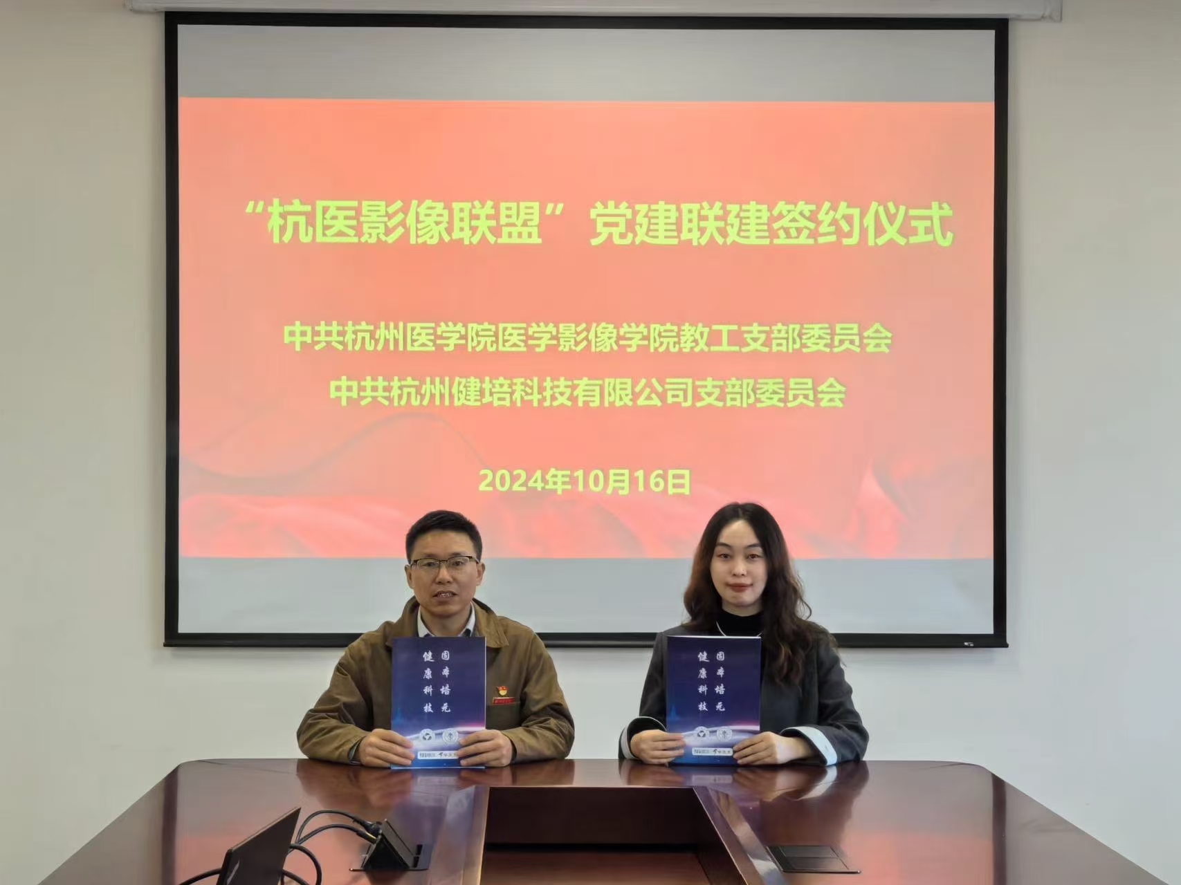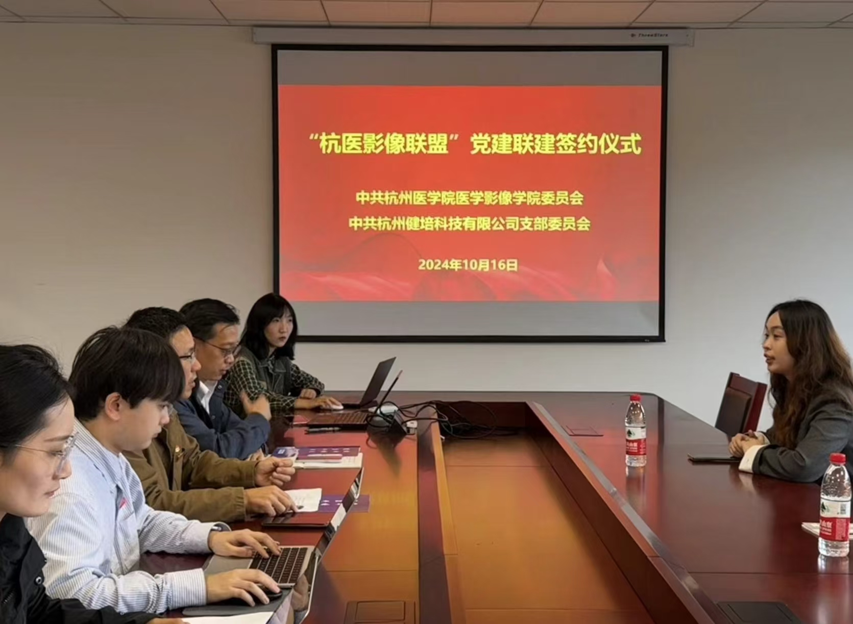 為深入貫徹落實黨的二十大精神、貫徹習(xí)近平新時代中國特色社會主義思想,進一步探索創(chuàng)新黨建工作,全面開展基層黨組織結(jié)對共建活動,著力構(gòu)建基層黨建工作新格局,實現(xiàn)以聯(lián)建促黨建,以黨建促發(fā)展,推動黨建與業(yè)務(wù)發(fā)展同頻共振。10月16日,中共杭州醫(yī)學(xué)院醫(yī)學(xué)影像學(xué)院委員會與中共杭州健培科技有限公司支部委員會“杭醫(yī)影像聯(lián)盟”黨建聯(lián)建簽約儀式成功舉行。杭州醫(yī)學(xué)院醫(yī)學(xué)影像學(xué)院副院長王大江;杭州醫(yī)學(xué)院醫(yī)學(xué)影像學(xué)院教工黨支部書記范一峰;健培科技黨支部書記謝金波等人員參加簽約儀式。