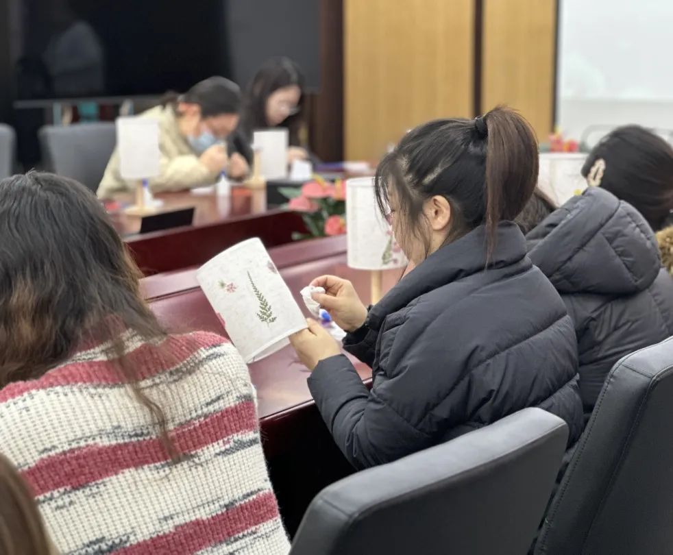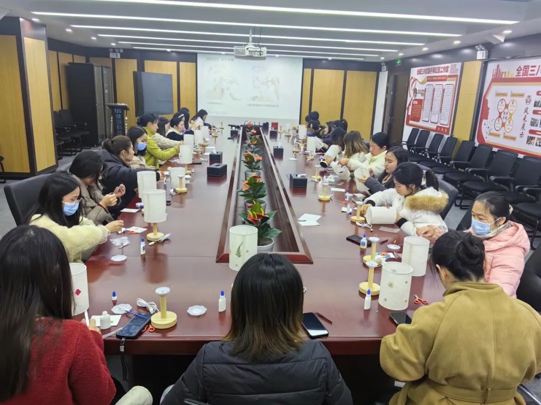 3月7日上午,女職工們紛紛動手實(shí)踐。大家充分發(fā)揮自己的創(chuàng)造力和想象力,在燈臺方寸之間,將原本零散的花材精心組合,變成了一件件獨(dú)具匠心的花藝燈臺作品。