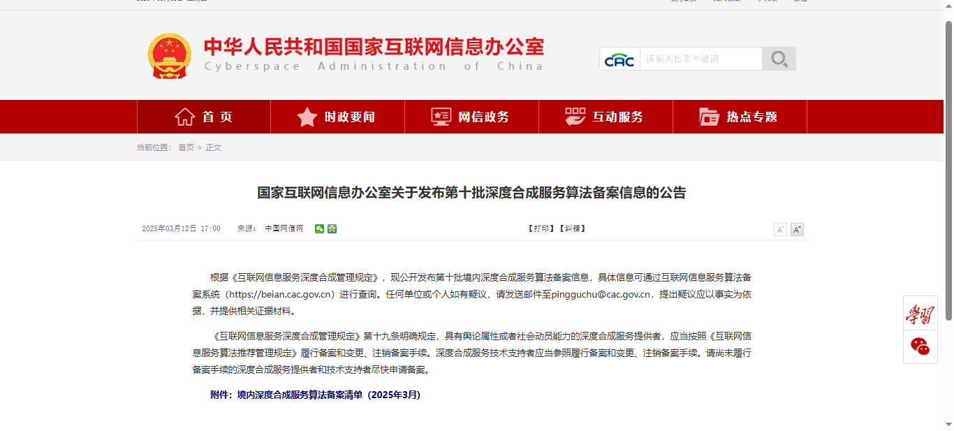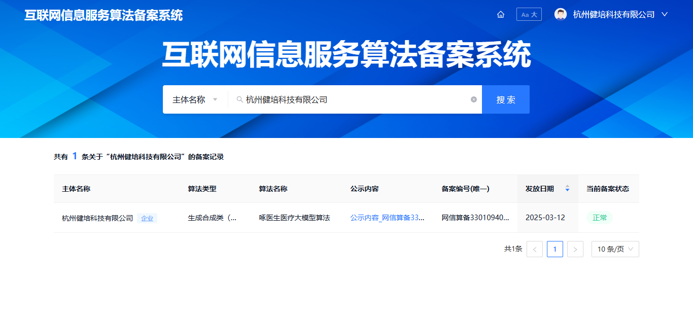 3月12日,國家互聯(lián)網(wǎng)信息辦公室發(fā)布了第十批深度合成服務算法備案信息的公告,?啄醫(yī)生醫(yī)療大模型榜上有名,這標志著我們的核心技術能力和產(chǎn)品合規(guī)性再次獲得權威認可,持續(xù)推動人工智能技術在醫(yī)療健康領域的深度應用。