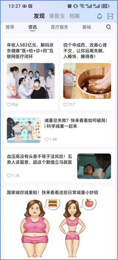 實例:針對患者的具體病情情況,為患者推送健康管理方案,包含飲食營養(yǎng)方面、運動作息方面、居家生活方面、風(fēng)險預(yù)警方面等內(nèi)容,同時不定期在啄醫(yī)生APP中推送健康管理資訊,方便用戶查閱。
