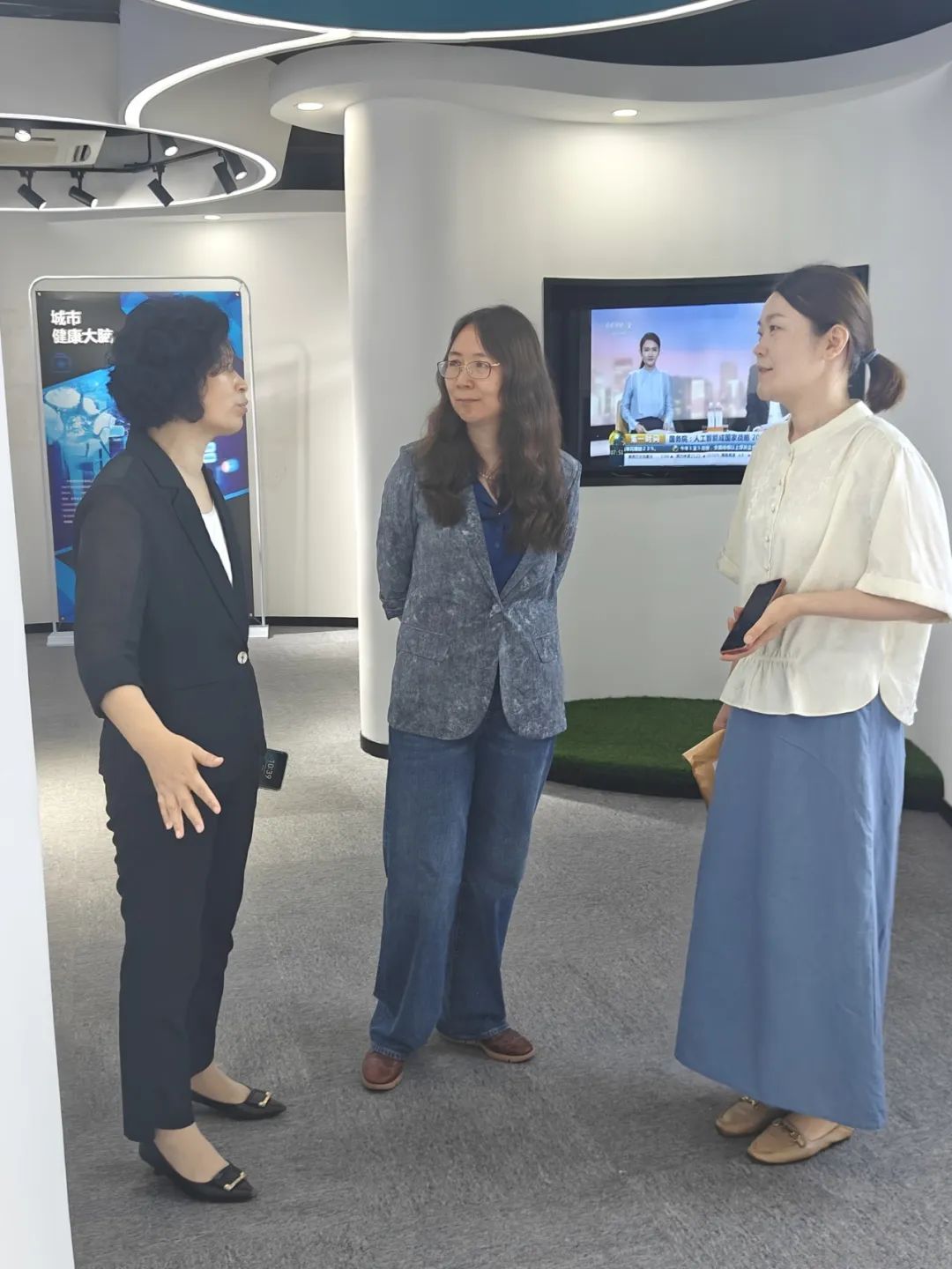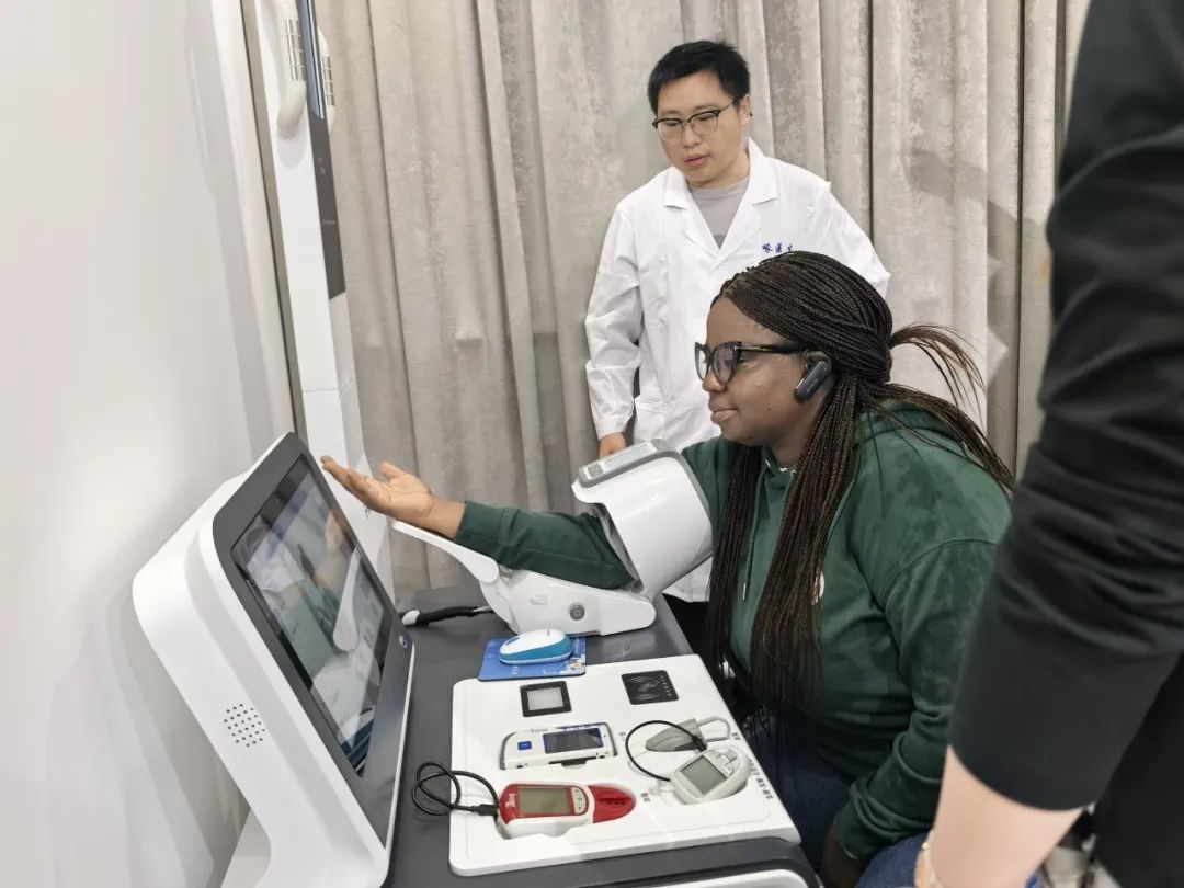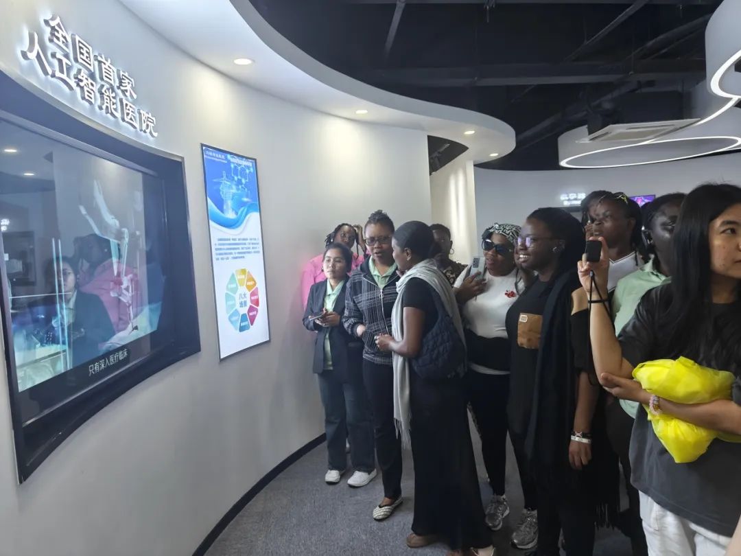 6月8日上午,中華女子學(xué)院副院長(zhǎng)李瑩,浙江省婦女干部學(xué)校黨委書(shū)記、校長(zhǎng)陳步云帶隊(duì),攜尼日利亞聯(lián)邦婦女事務(wù)部資深社區(qū)發(fā)展官員ADEDIJI,BUKOLA ADERINOLA;坦桑尼亞(桑給巴爾)衛(wèi)生部官員ALI,ZAINAB ABDULLA;贊比亞社區(qū)發(fā)展與社會(huì)服務(wù)部社會(huì)福利官員HANG'ANDU,DAMALES KABENGELE MWILIMA等15國(guó)46位中華女子學(xué)院援外學(xué)歷學(xué)位教育項(xiàng)目浙江社會(huì)實(shí)踐師生,赴健培科技考察調(diào)研。深入了解醫(yī)療行業(yè)前沿技術(shù)的發(fā)展情況,以及新一代人工智能在數(shù)字醫(yī)療領(lǐng)域的場(chǎng)景應(yīng)用和產(chǎn)業(yè)化前景。