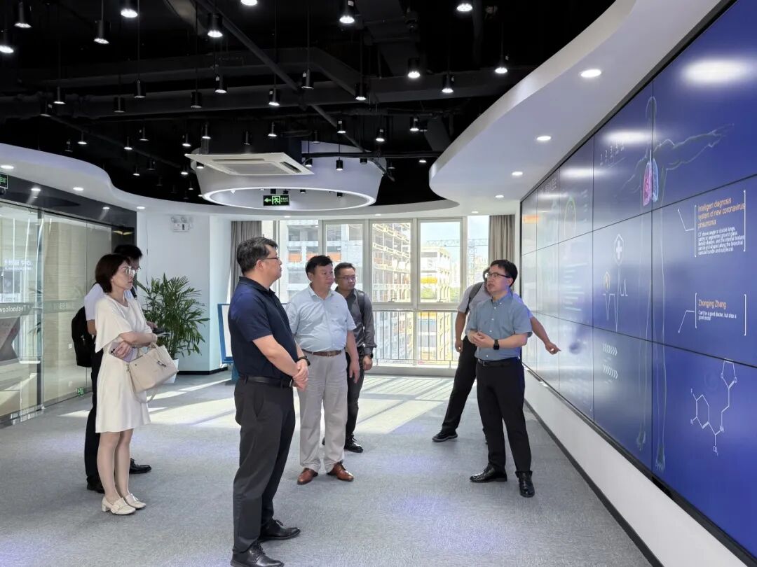 9月16日下午,聯(lián)通數(shù)據(jù)智能有限公司董事長(zhǎng)、總經(jīng)理,中國(guó)聯(lián)通數(shù)智研究院院長(zhǎng)陳海鋒;綜合部總經(jīng)理張福林;金文部總經(jīng)理陳昀等領(lǐng)導(dǎo)一行蒞臨健培科技考察指導(dǎo)工作。調(diào)研新一代信息科技的發(fā)展趨勢(shì)和應(yīng)用前景,并重點(diǎn)關(guān)注人工智能技術(shù)在醫(yī)療領(lǐng)域的創(chuàng)新和應(yīng)用。健培科技董事長(zhǎng)程國(guó)華、聯(lián)合創(chuàng)始人兼首席技術(shù)官季紅麗、首席醫(yī)療戰(zhàn)略官鄭昶、副總裁徐招海、黨支部書記謝金波、產(chǎn)品部總監(jiān)周彬波、方案設(shè)計(jì)部總監(jiān)任晉忠等公司領(lǐng)導(dǎo)陪同調(diào)研。