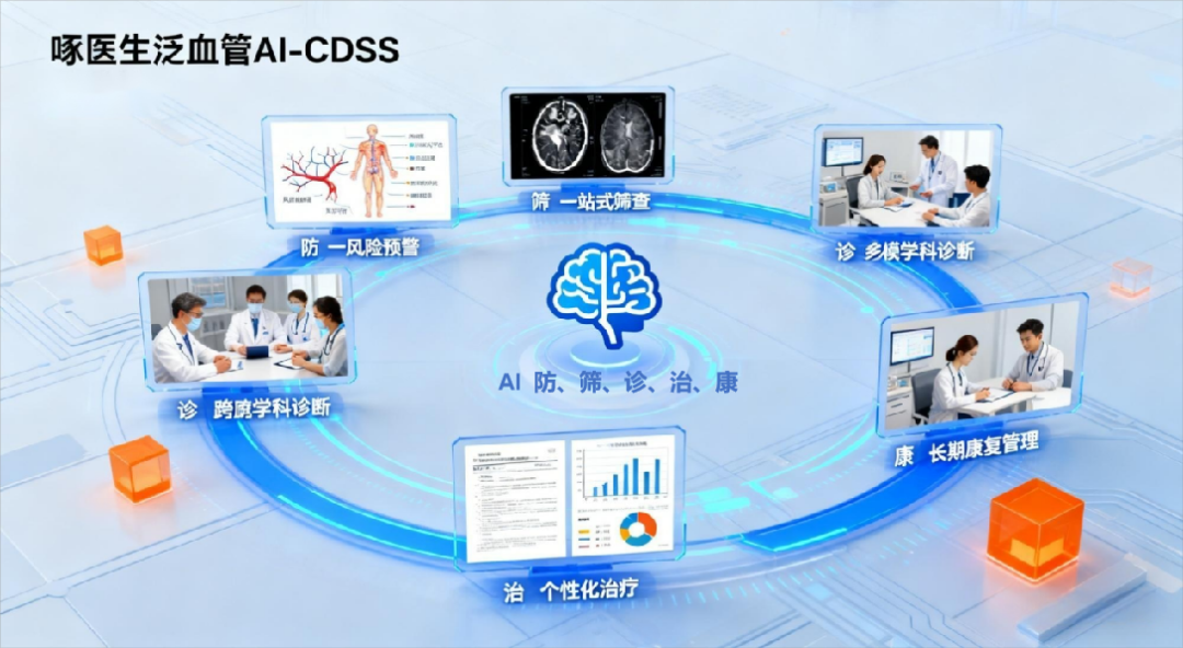 近年來,人工智能技術在醫(yī)療領域的應用日益深入,但專注于泛血管疾病全程管理的產(chǎn)品仍不多見。 這一空白正被填補??健培科技正式發(fā)布“泛血管疾病AI-CDSS全流程健康管理”產(chǎn)品,融合其領先的“啄醫(yī)生”醫(yī)療大模型技術與可穿戴設備,覆蓋從篩查、診斷到康復、隨訪的全流程。