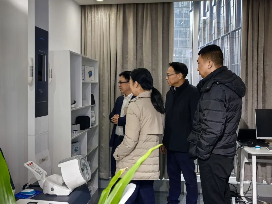 2月26日下午,農(nóng)工黨浙江省委會專職副主委兼秘書長、省政協(xié)副秘書長吳道濤,農(nóng)工黨省委會組織部部長米靜,組織部副部長王瑞?等一行蒞臨健培科技參觀考察。走訪黨員企業(yè)并調(diào)研醫(yī)療健康產(chǎn)業(yè)與人工智能融合發(fā)展情況。農(nóng)工黨中央經(jīng)濟委委員、農(nóng)工黨浙江省委會教科文工作委員會委員、健培科技董事長程國華,副總裁徐招海、黨支部書記謝金波等公司領(lǐng)導陪同調(diào)研。