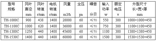 TH-C型推拉式負壓風(fēng)機技術(shù)參數(shù):