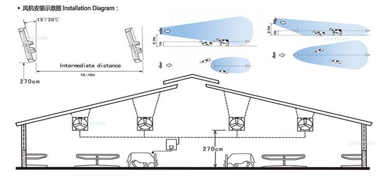 此產品廣泛應用于畜牧養(yǎng)殖場所,降溫效果好,通風換氣能力強。