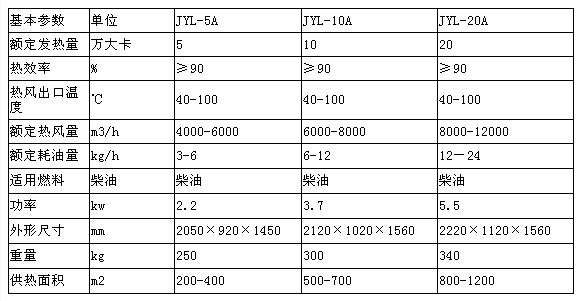 廠房、車間燃油熱風(fēng)機技術(shù)數(shù)據(jù):